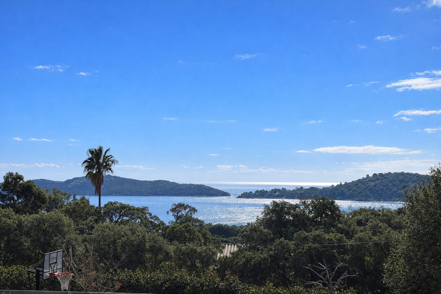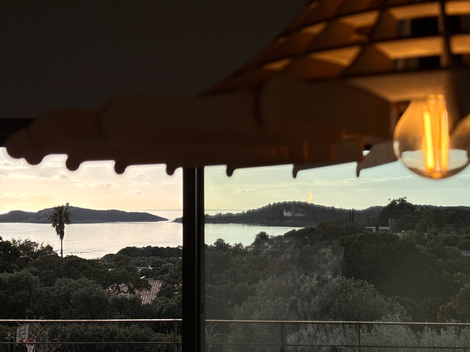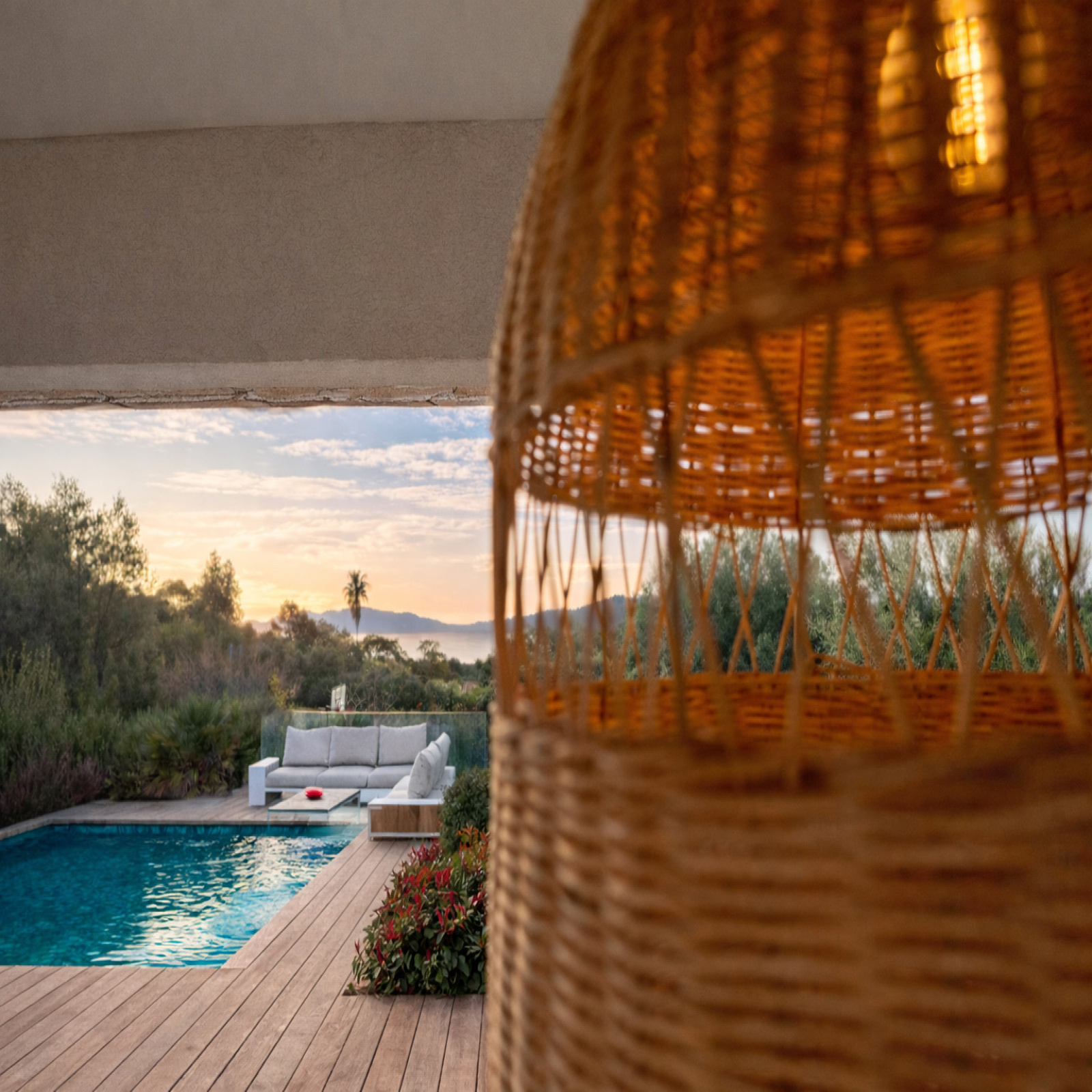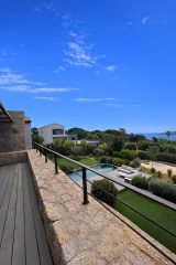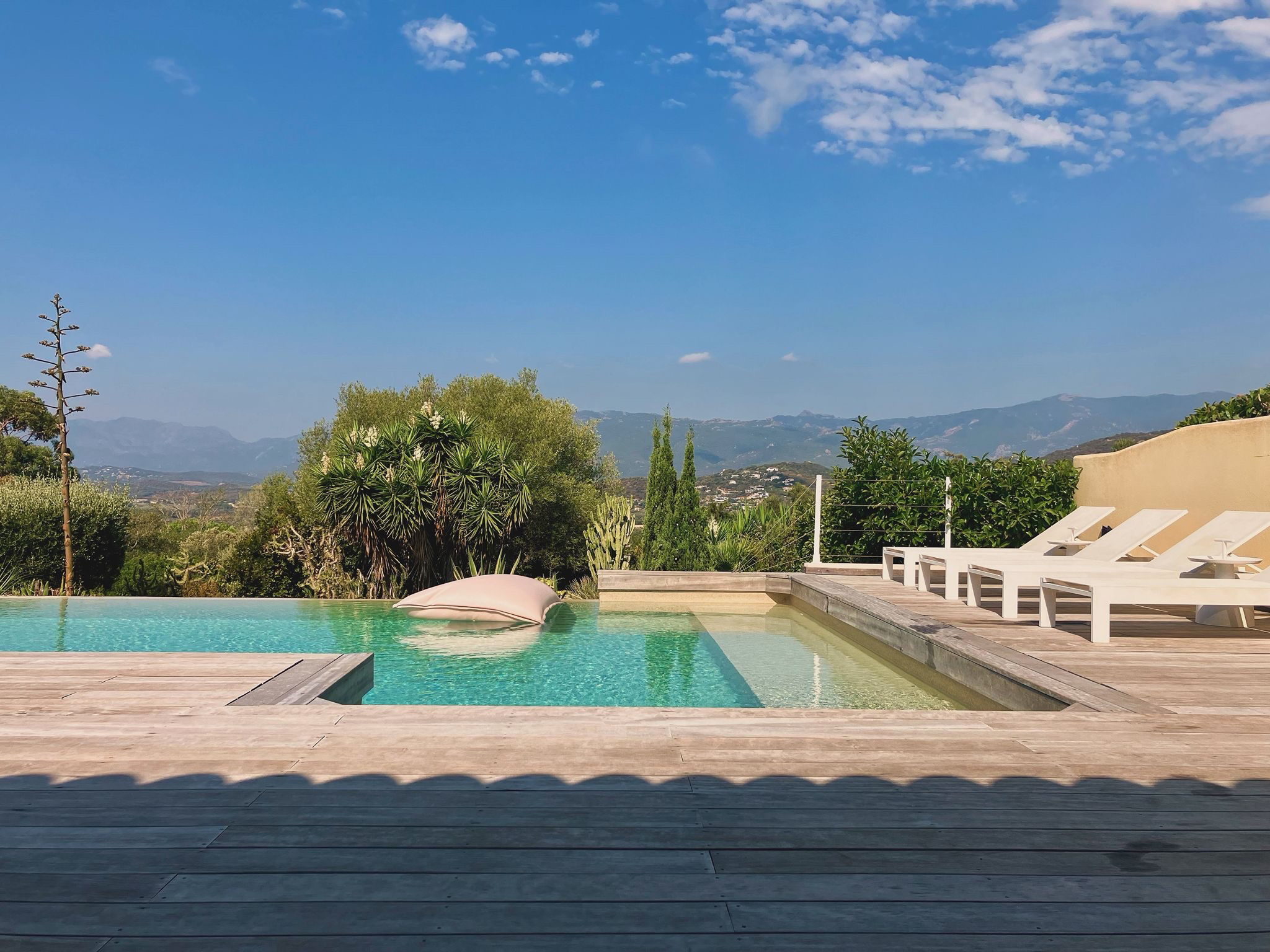 L’ensemble s’ouvre sur une grande terrasse partiellement couverte, offrant une vue mer dégagée,idéale pour les repas en extérieur, les moments de détente et les soirées face au paysage corse.