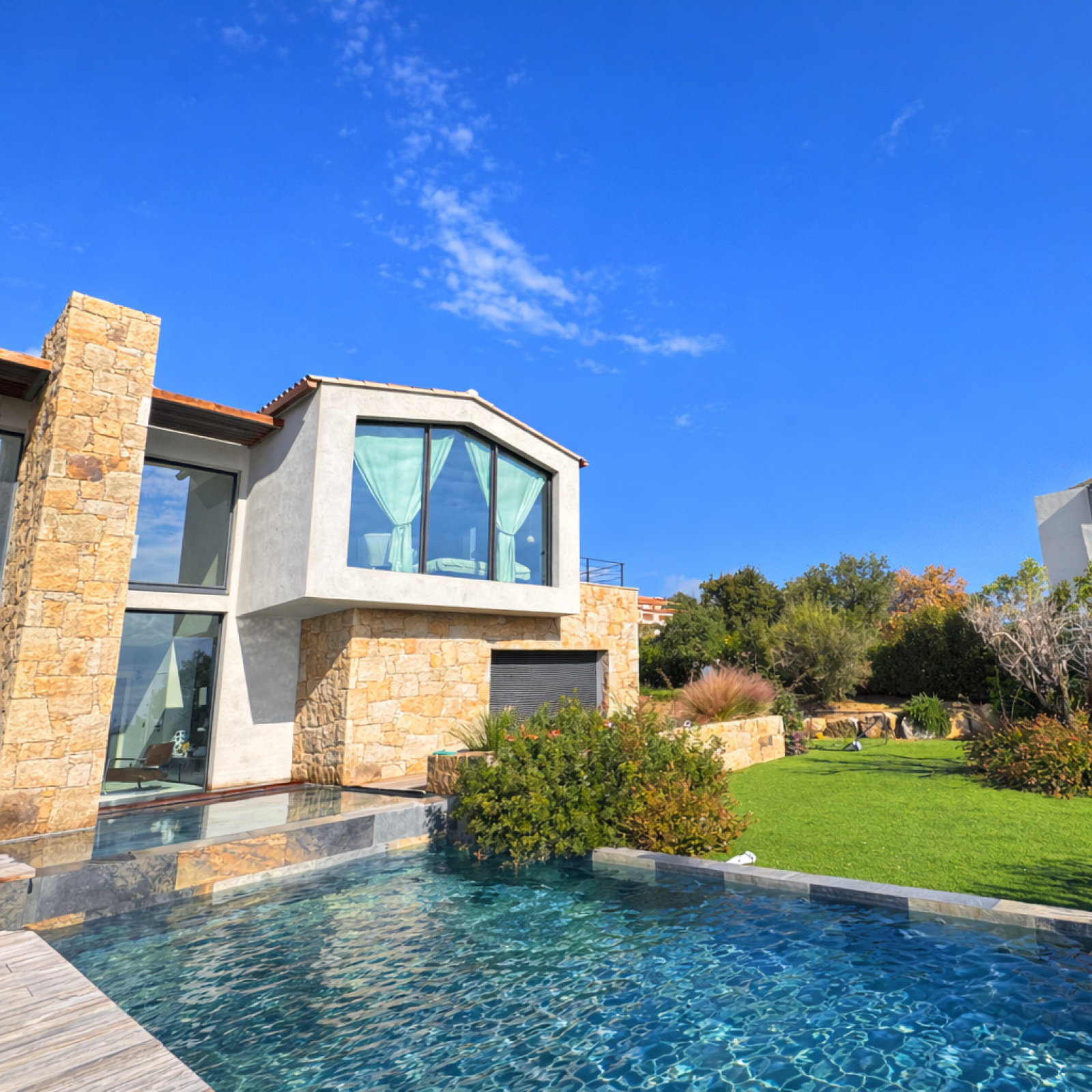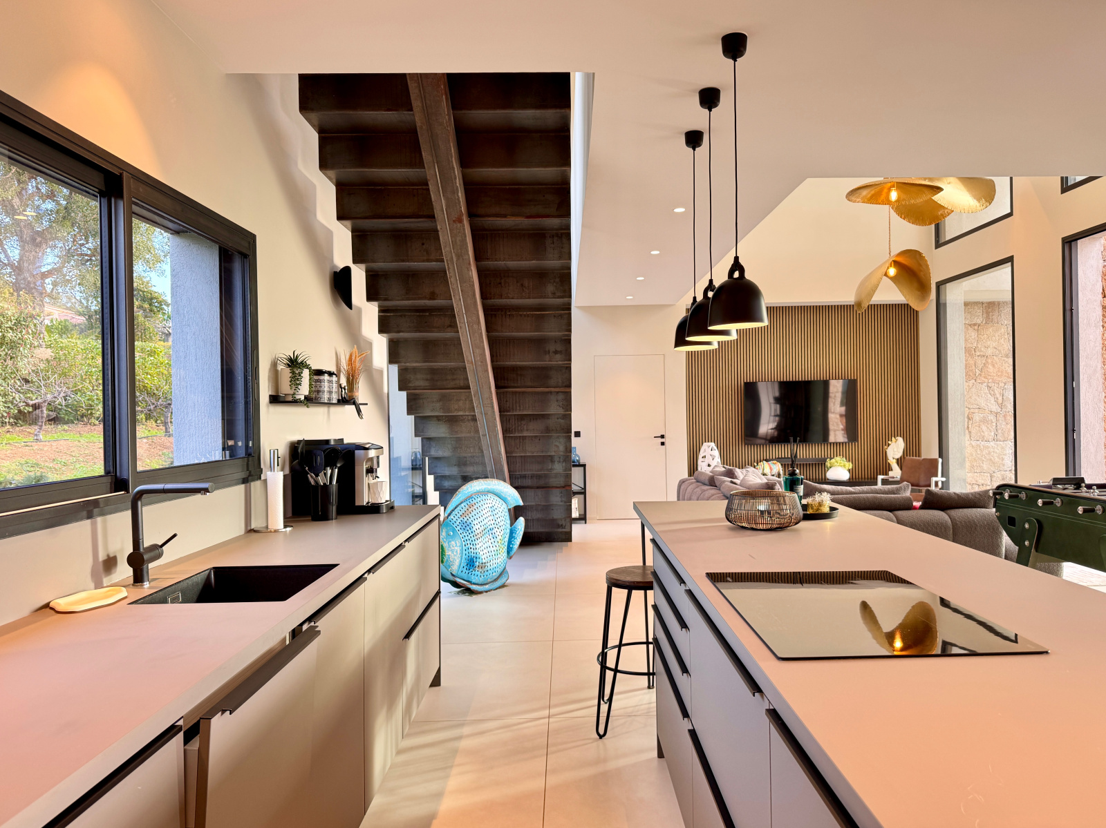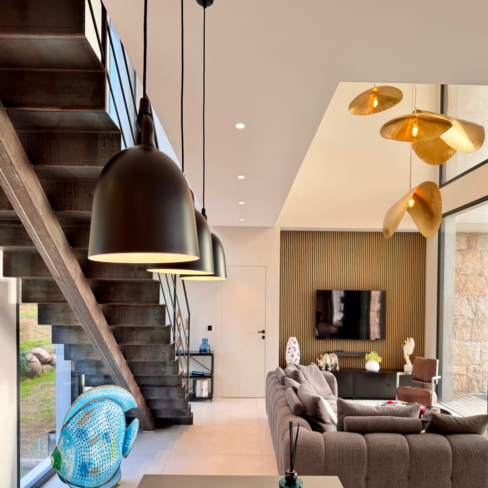 Villa d’architecte d’environ 200 m², répartie sur trois niveaux, la Casa di Stella séduit par son architecture contemporaine, ses volumes généreux et ses prestations haut de gamme, pensées pour offrir un confort absolu.