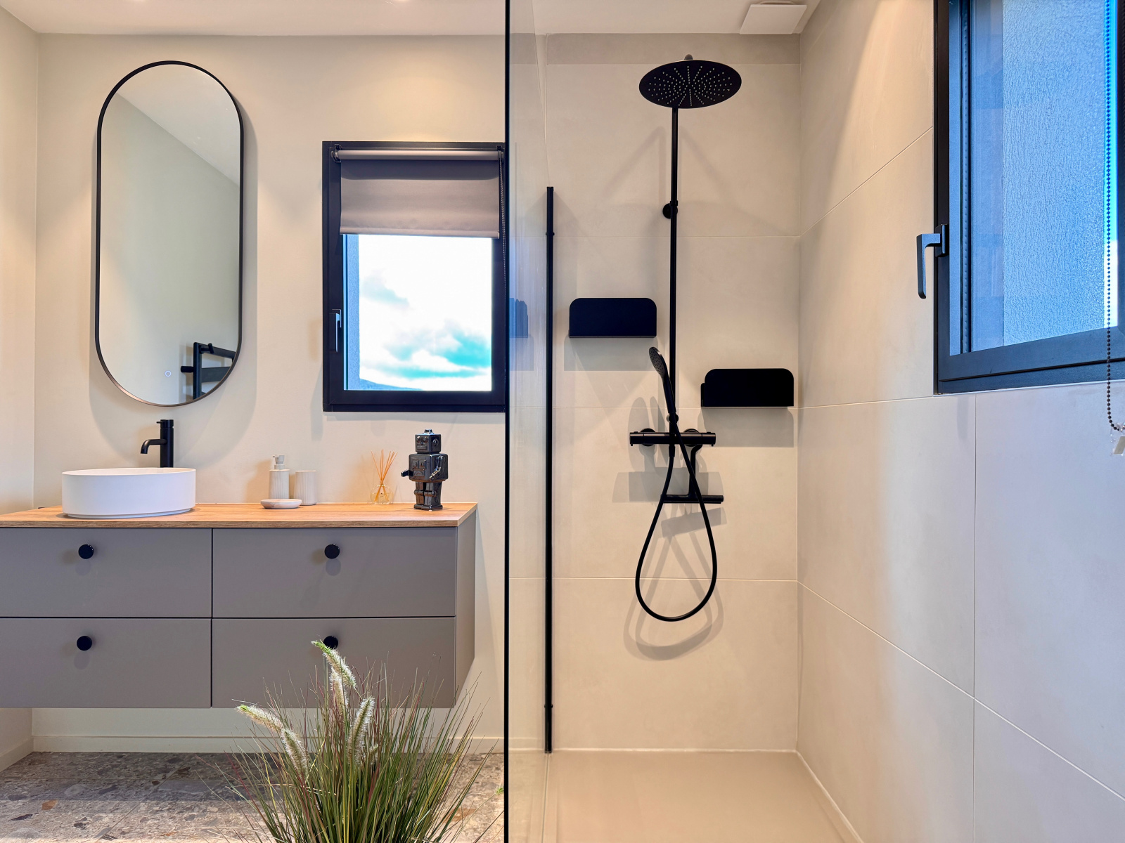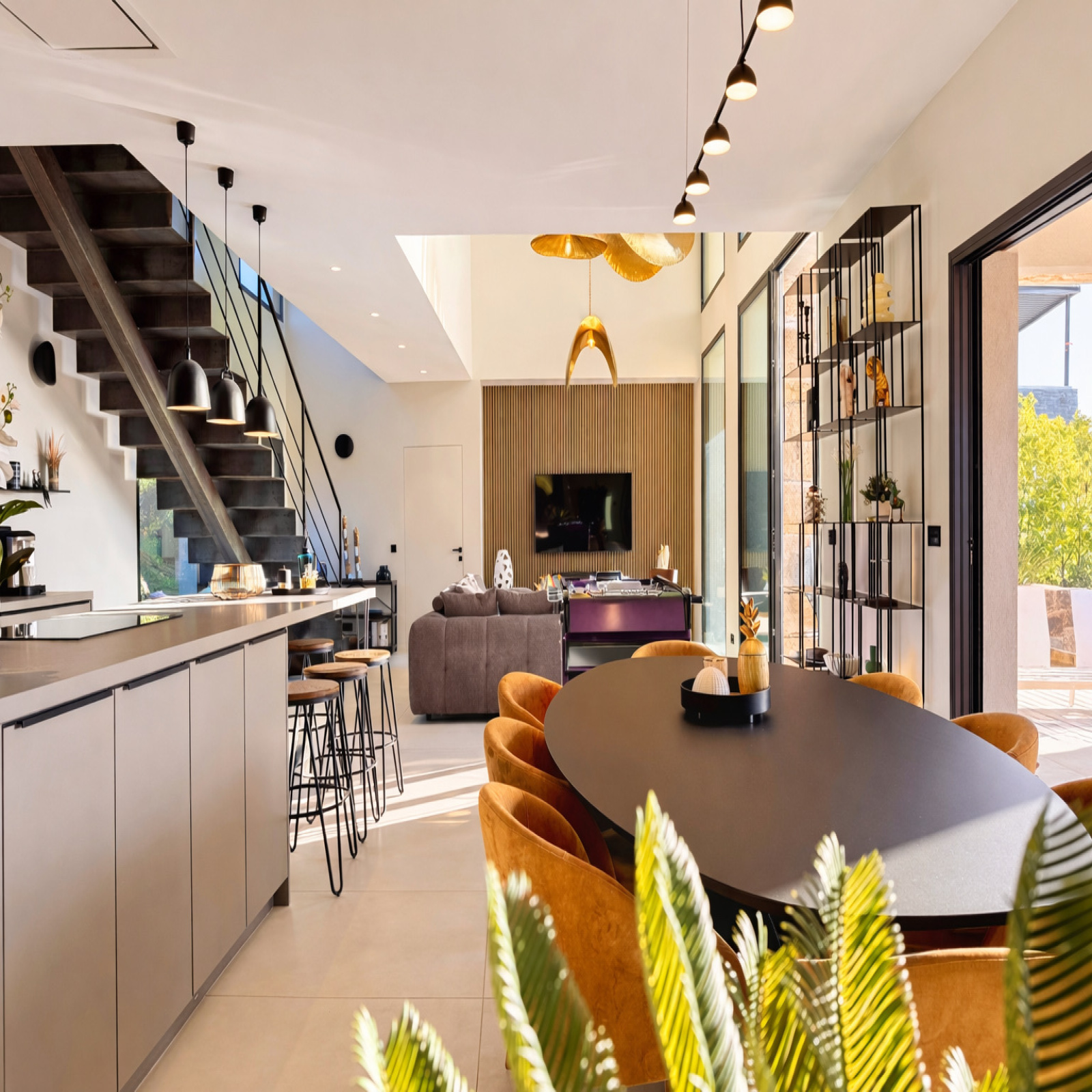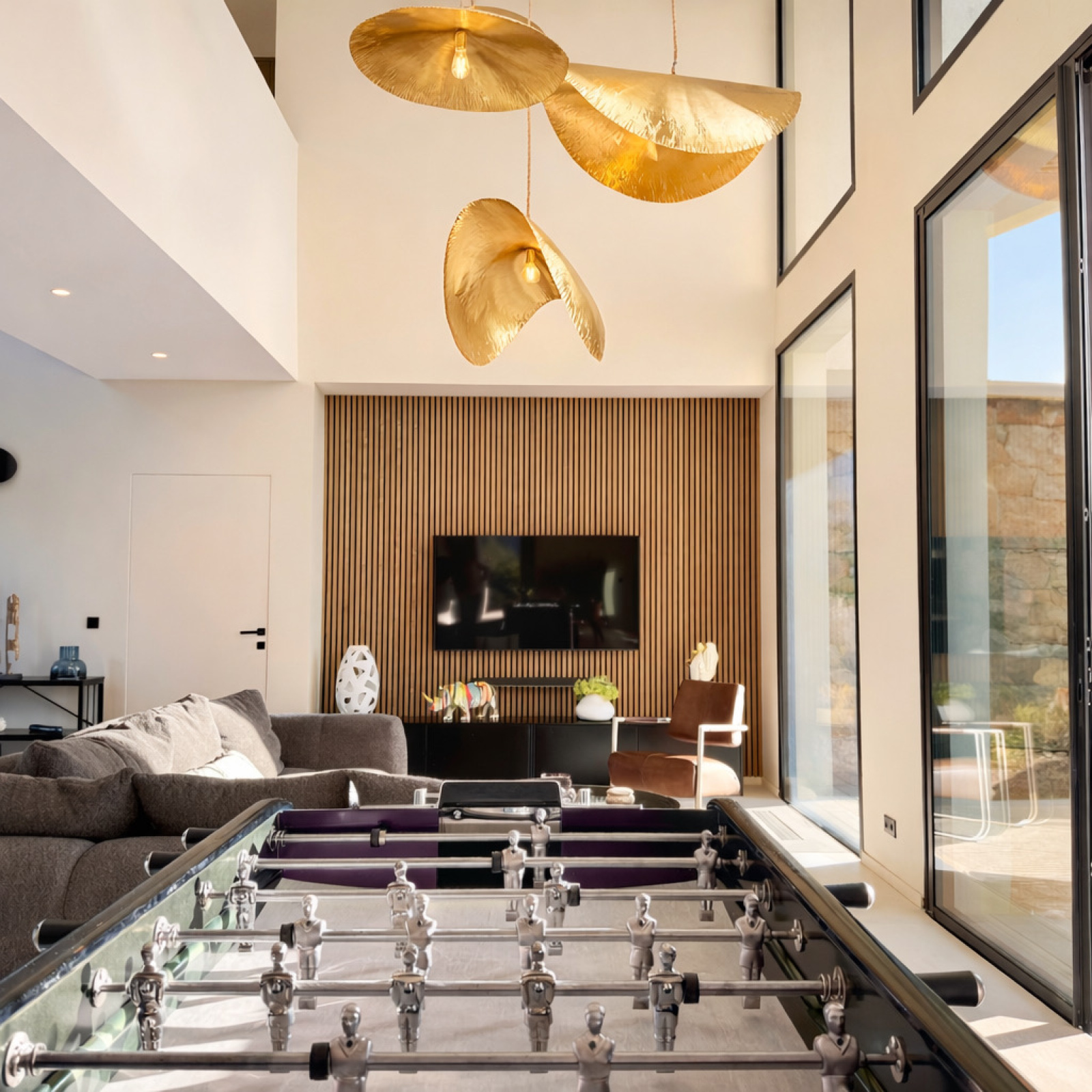 Villa d’architecte d’environ 200 m², répartie sur trois niveaux, la Casa di Stella séduit par son architecture contemporaine, ses volumes généreux et ses prestations haut de gamme, pensées pour offrir un confort absolu.