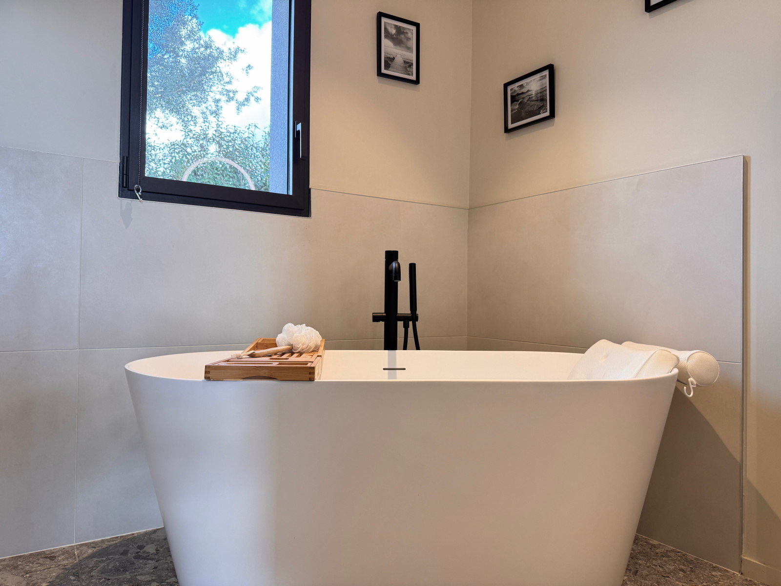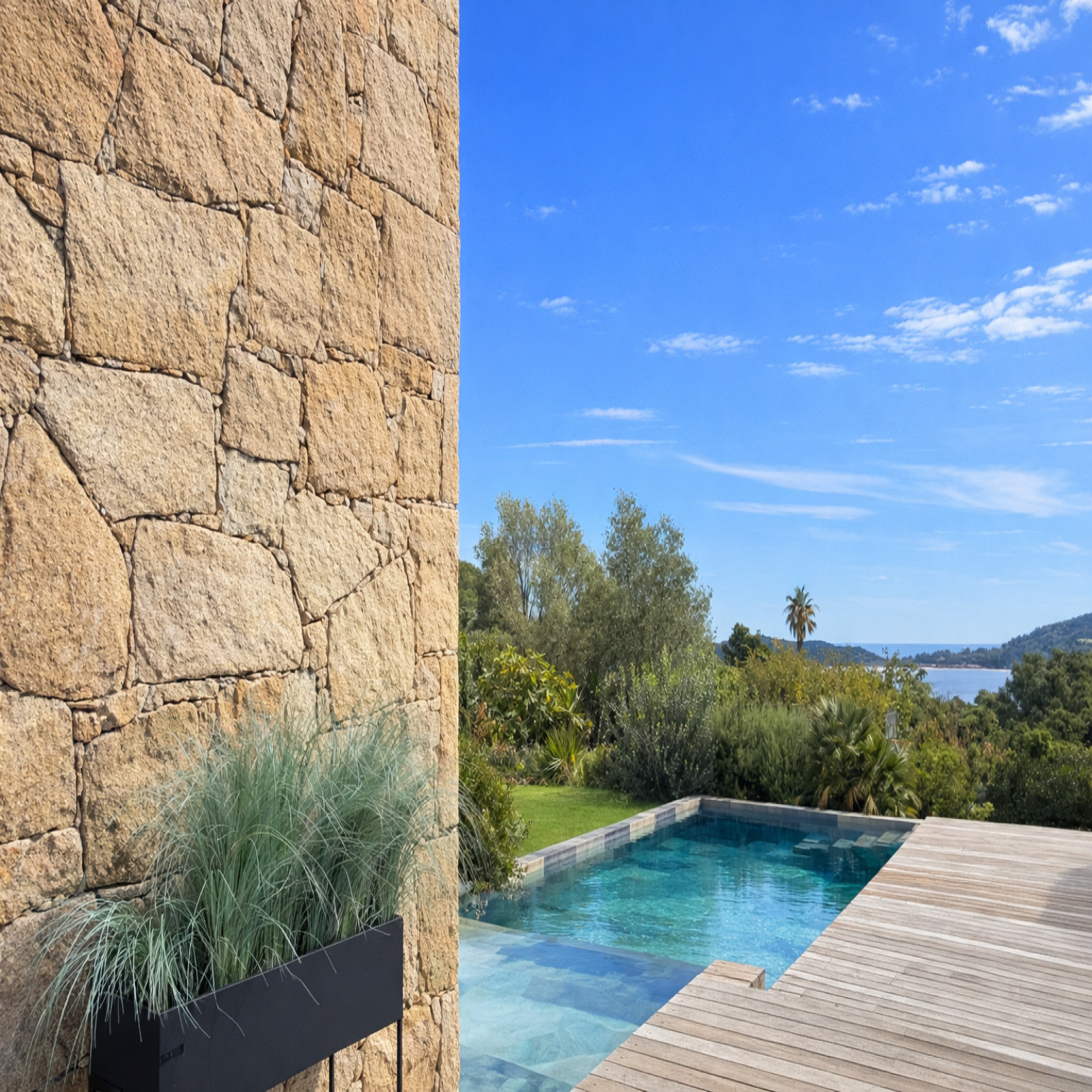 Le jardin paysager, planté d’essences méditerranéennes, offre un cadre naturel, élégant et apaisant.