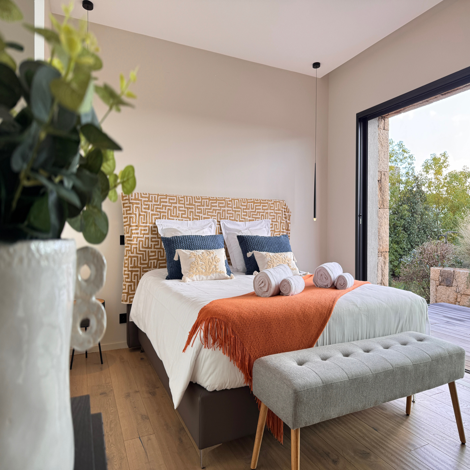 La villa dispose de 4 chambres, pensées pour accueillir famille et invités dans une atmosphère élégante et intimiste :