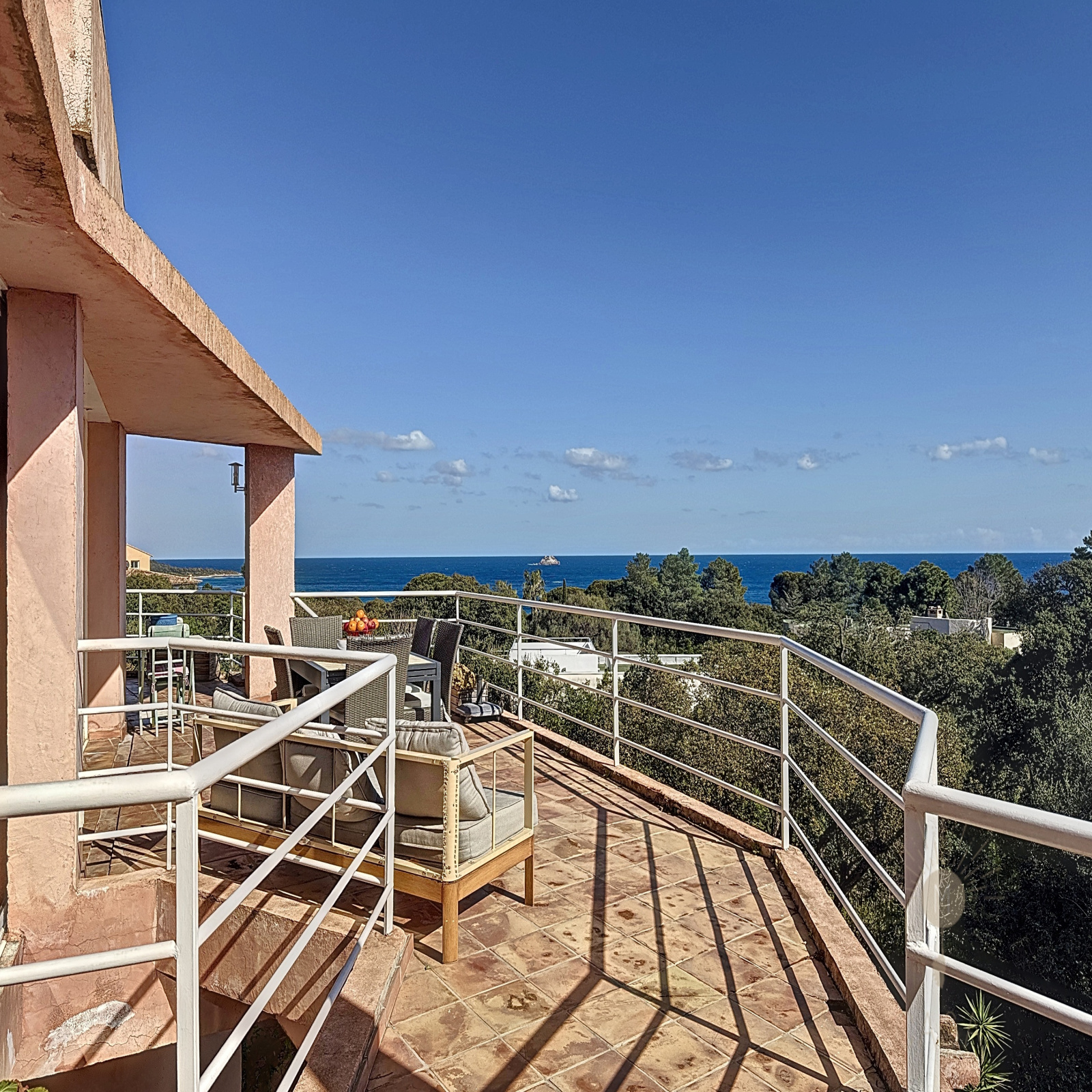 Située à 150 mètres de la plage, cette villa de 195 m² associe confort et authenticité. Son environnement préservé, sa vue panoramique sur la mer et l’île de Pinarello avec sa tour Génoise ainsi que son grand jardin de 2200 m² entièrement arboré, en font une adresse idéale pour des vacances en famille ou entre amis.