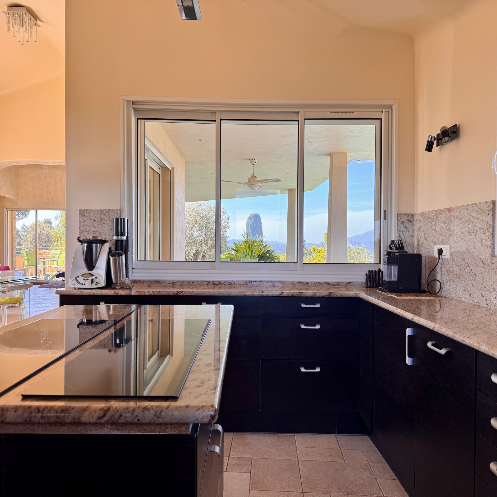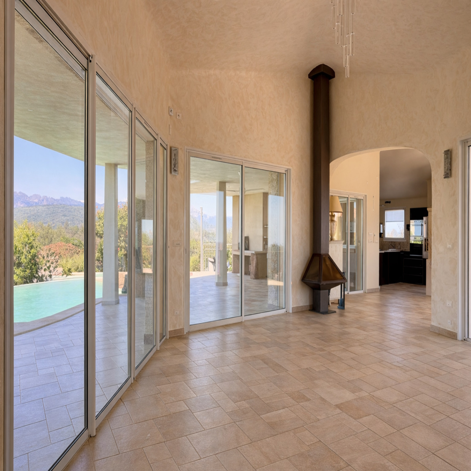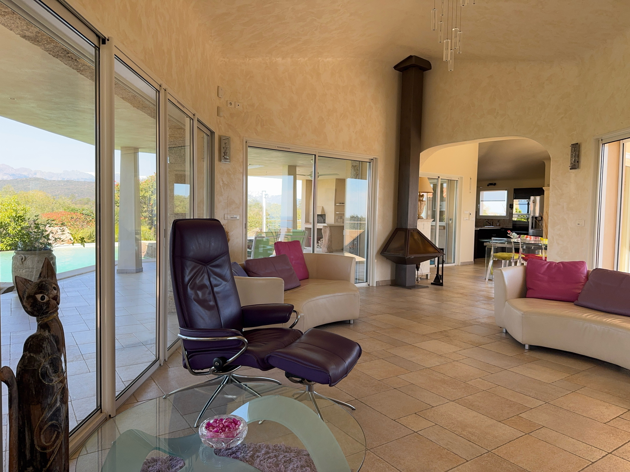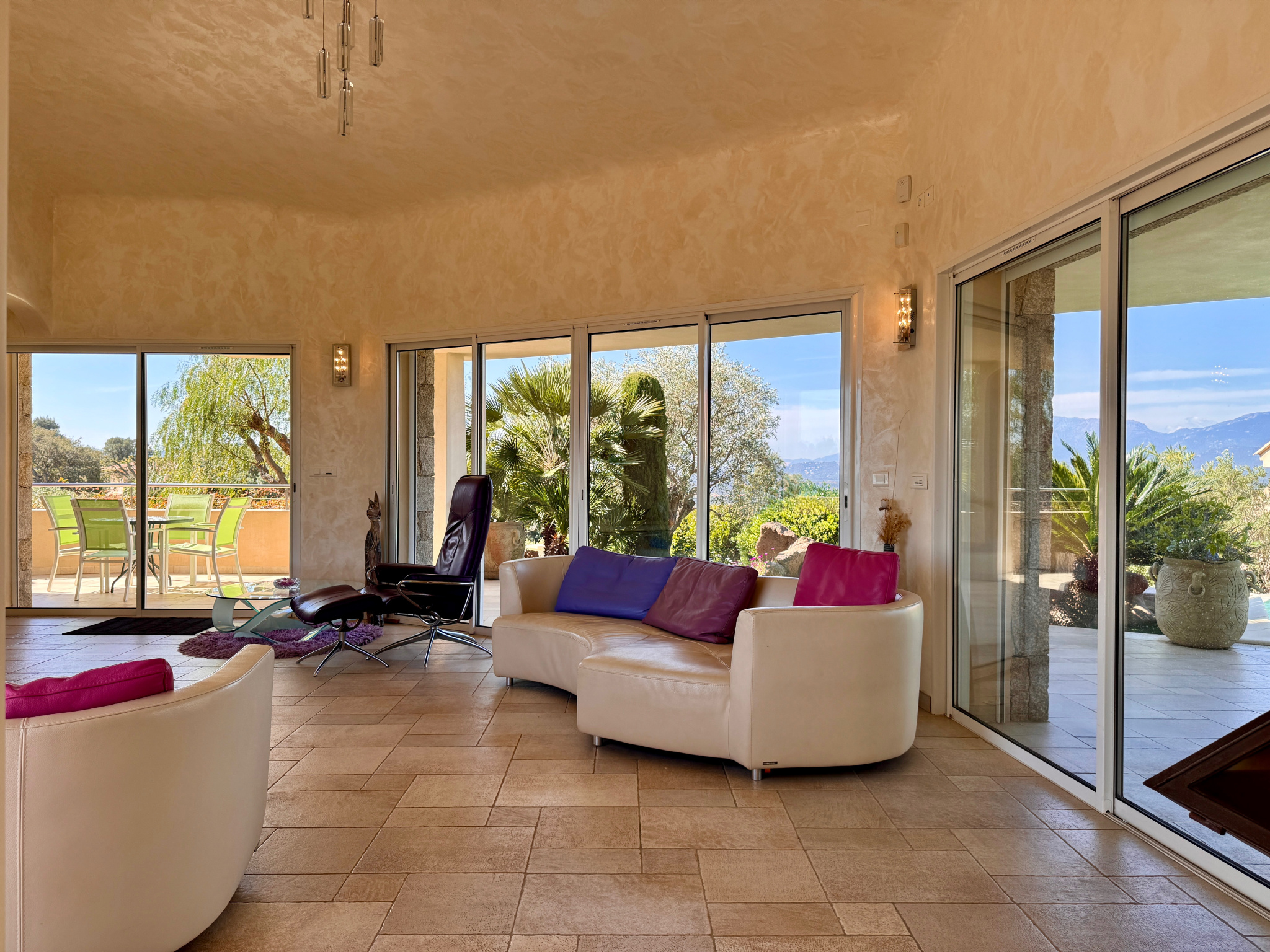 • Grandes baies vitrées à galandage ouvertes sur la mer