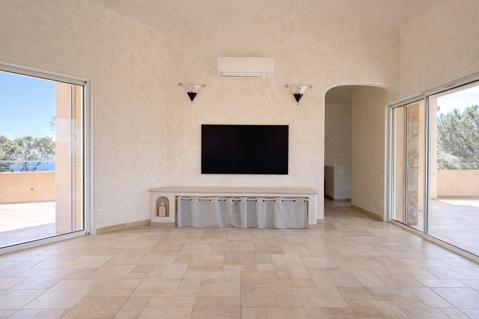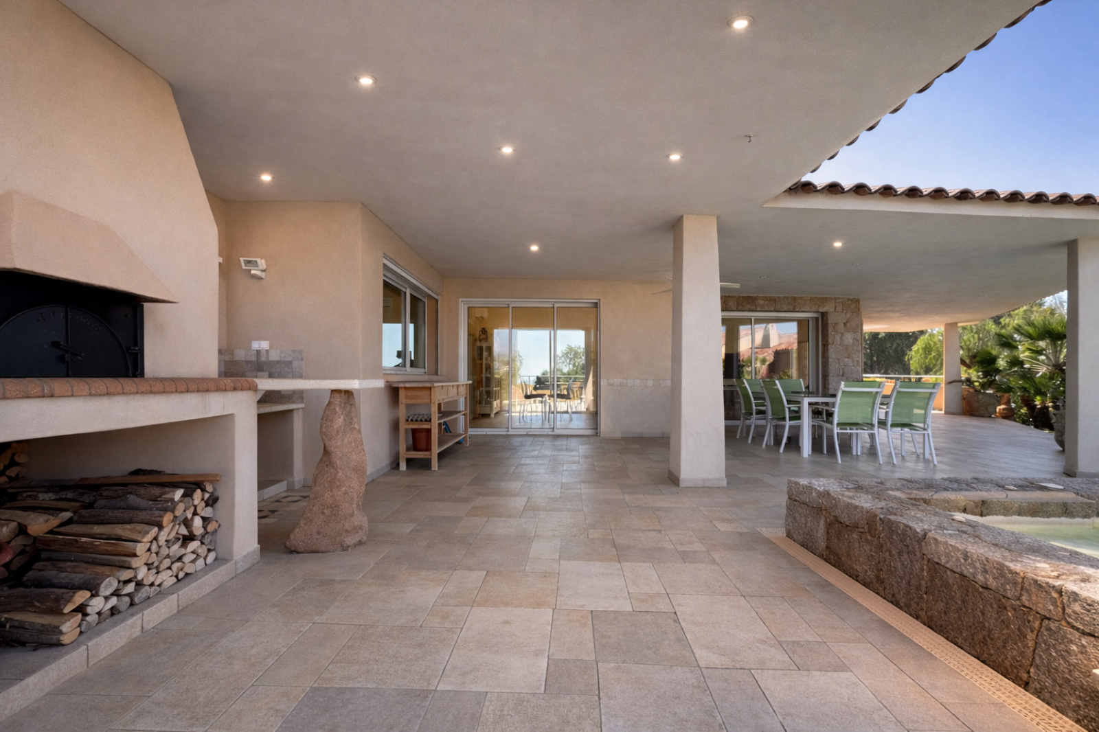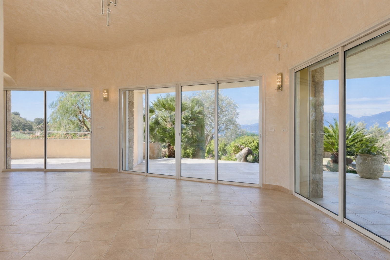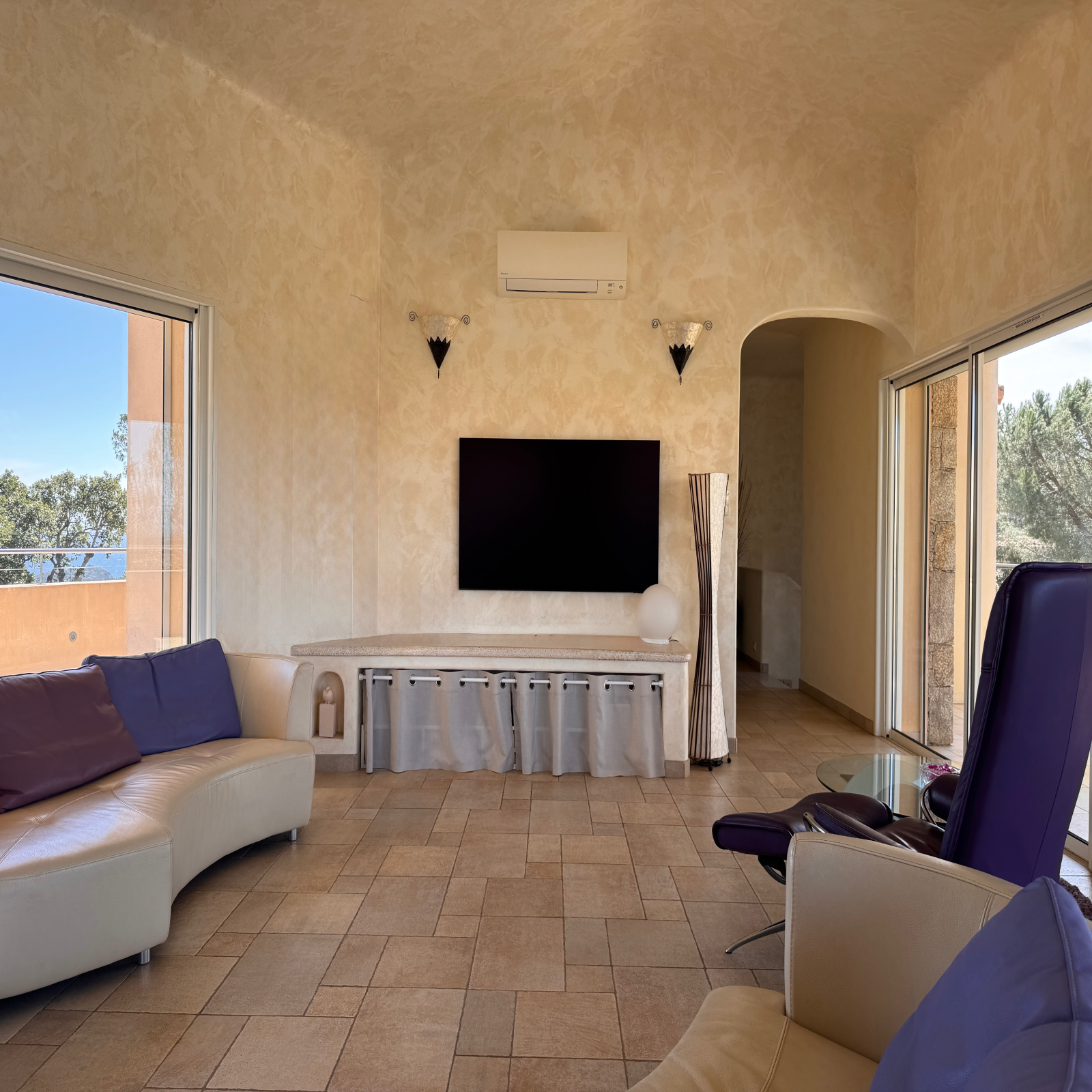 • Grandes baies vitrées à galandage ouvertes sur la mer