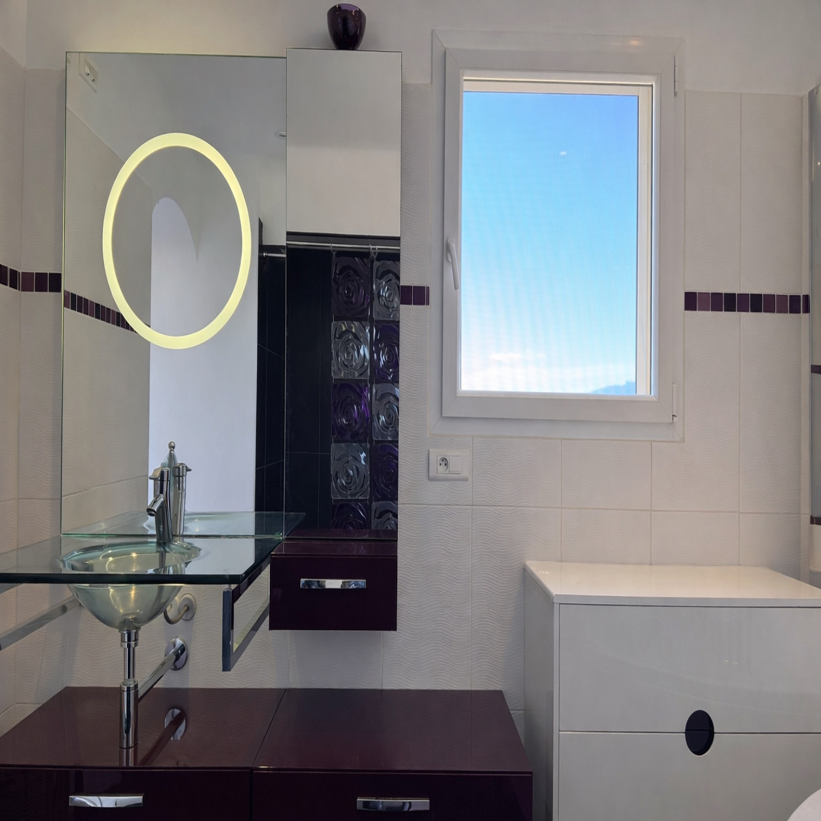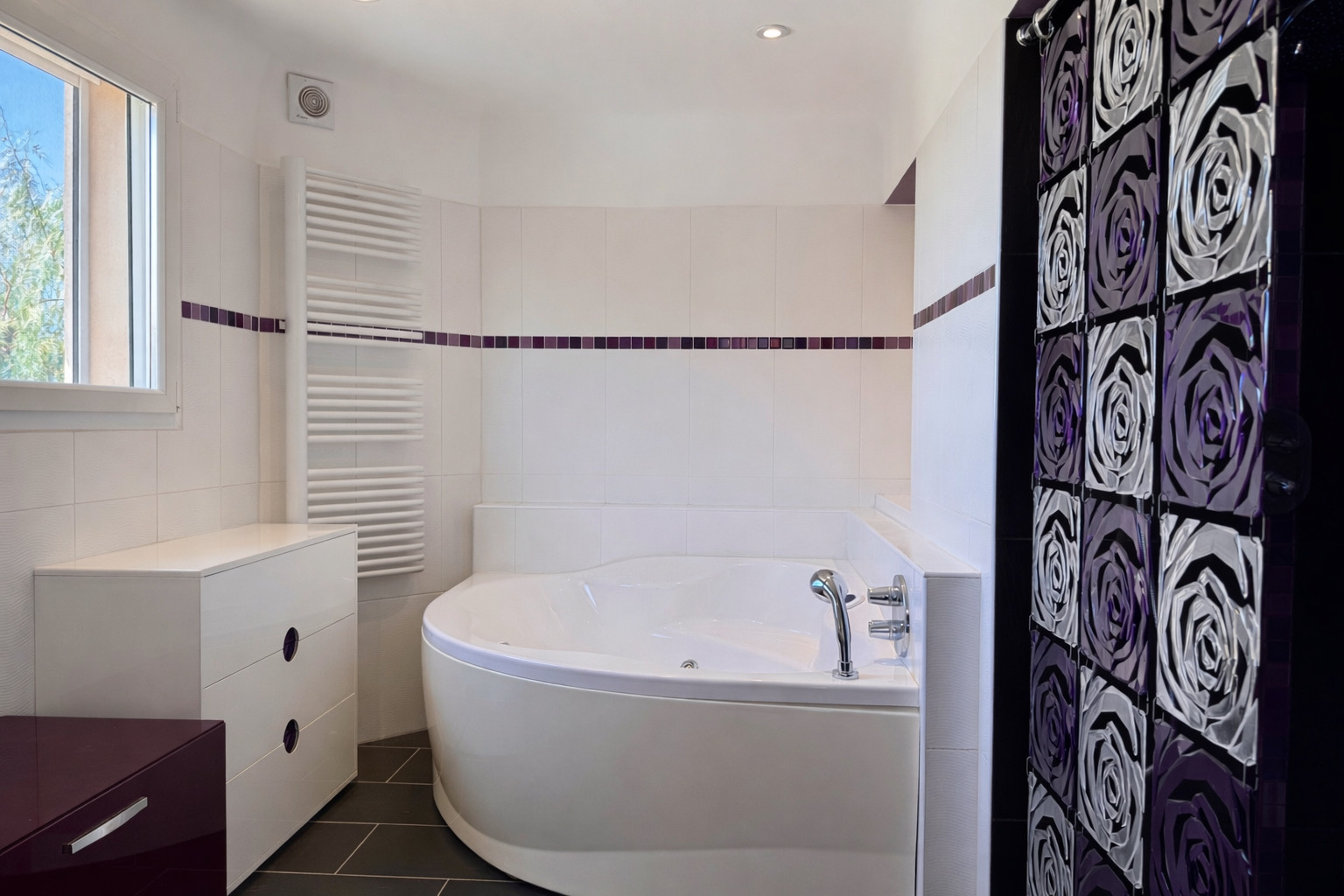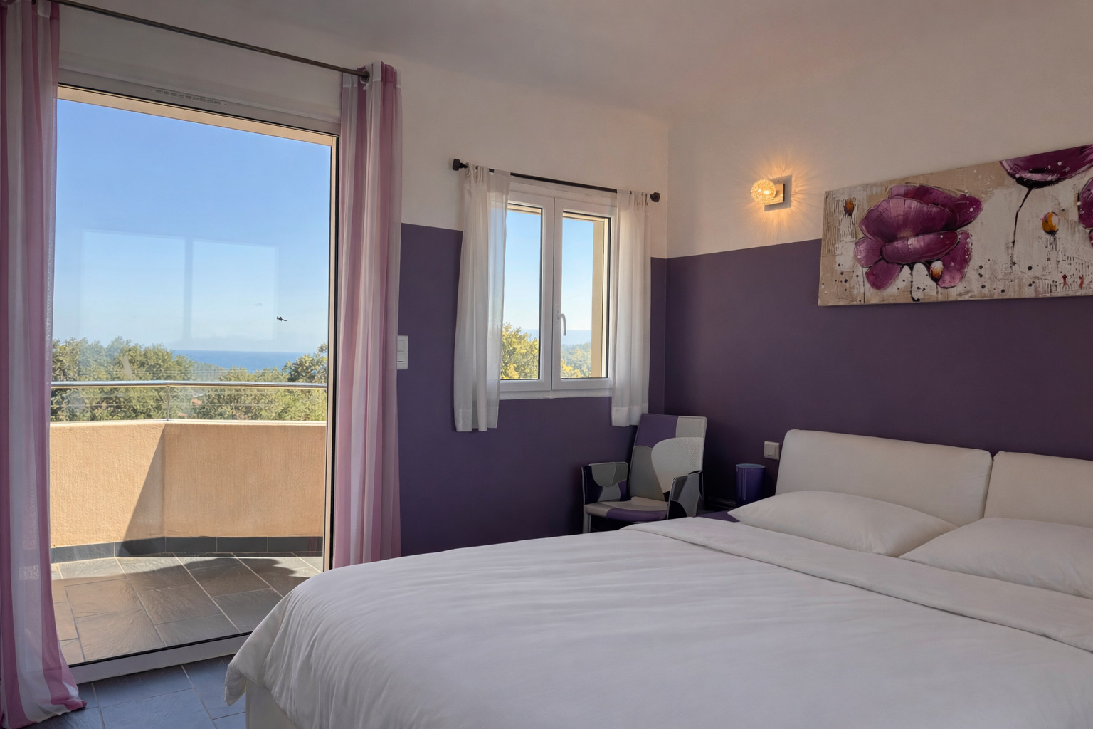 • Suite parentale avec salle de bains complète ( douche, baignoire et wc privé) et double balcon vue mer