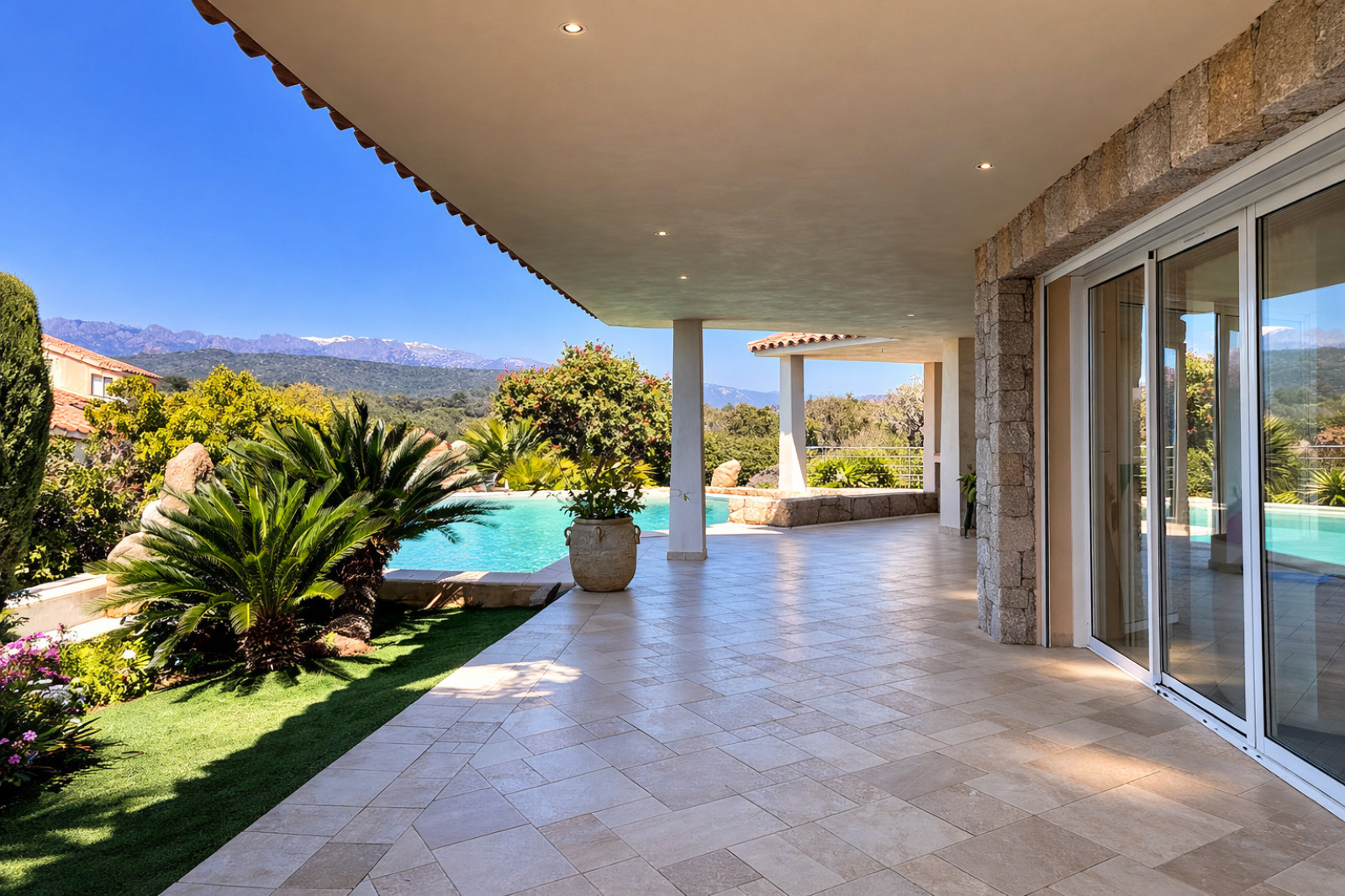 Idéalement située sur les hauteurs d’Arasu, dans un environnement résidentiel recherché et au calme absolu, cette propriété bénéficie d’un emplacement rare, à proximité immédiate du Cabanon Bleu et de sa plage de sable fin, accessible à pied.
