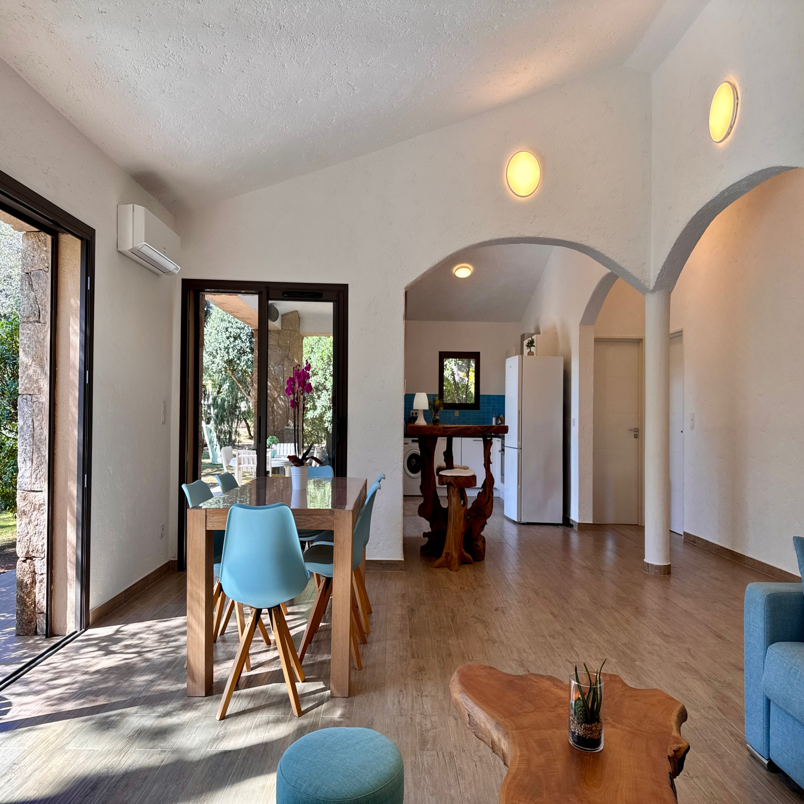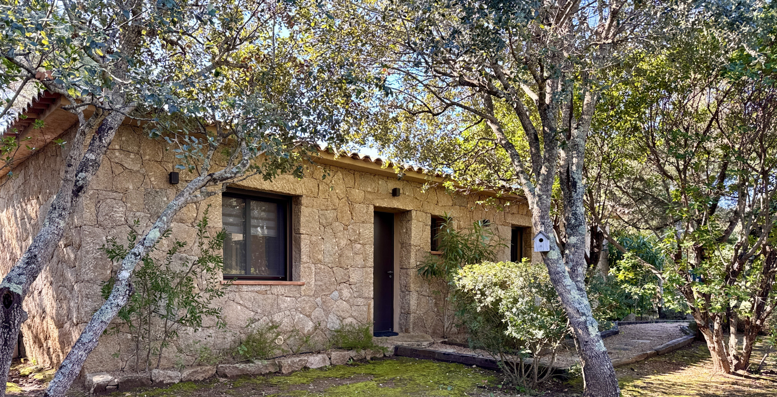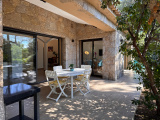 Au cœur du très recherché Domaine de Cala Rossa, découvrez cette bergerie de plain-pied, construite il y a moins de 10 ans, offrant un cadre de vie rare entre authenticité et élégance. Implantée sur un magnifique terrain plat de 1 419 m², entièrement clos et soigneusement arboré d’essences endémiques, la propriété bénéficie d’un environnement intime, paisible et parfaitement entretenu. Le jardin paysagé sublime la bâtisse, réalisée en pierres de taille façonnées dans les règles de l’art à l’ancienne, témoignant d’un savoir-faire remarquable. D’une surface habitable d’environ 88 m² (Diagnostic loi Carrez en cours), la bergerie se compose d’une entrée desservant une belle pièce de vie lumineuse avec cuisine ouverte, aménagée et entièrement équipée. L’espace séjour s’ouvre naturellement vers l’extérieur grâce à une terrasse couverte d’environ 38 m², idéale pour profiter des beaux jours. L’espace nuit propose deux chambres avec placards aménagés, une spacieuse salle de douches avec double vasque, ainsi qu’un WC indépendant avec lave-mains.