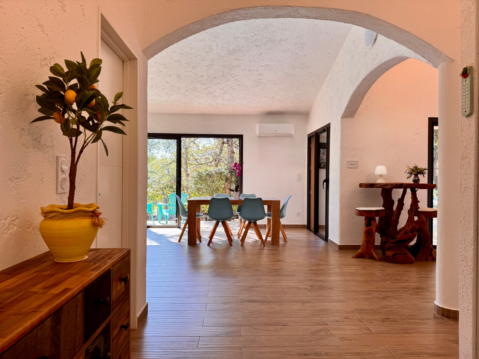 Vendue entièrement meublée et en excellent état, cette propriété offre également un potentiel d’aménagement avec la possibilité de créer une extension et une piscine.